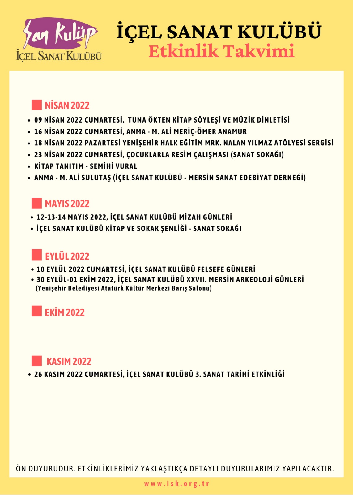 İçel Sanat Kulübü Güncel Etkinlik Takvimi Yayınlandı