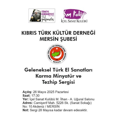 KIBRIS TÜRK KÜLTÜR DERNEĞİ MERSİN ŞUBESİ GELENEKSEL TÜRK EL SANATLARI KARMA MİNYATÜR VE TEZHİP SERGİSİ – 2025